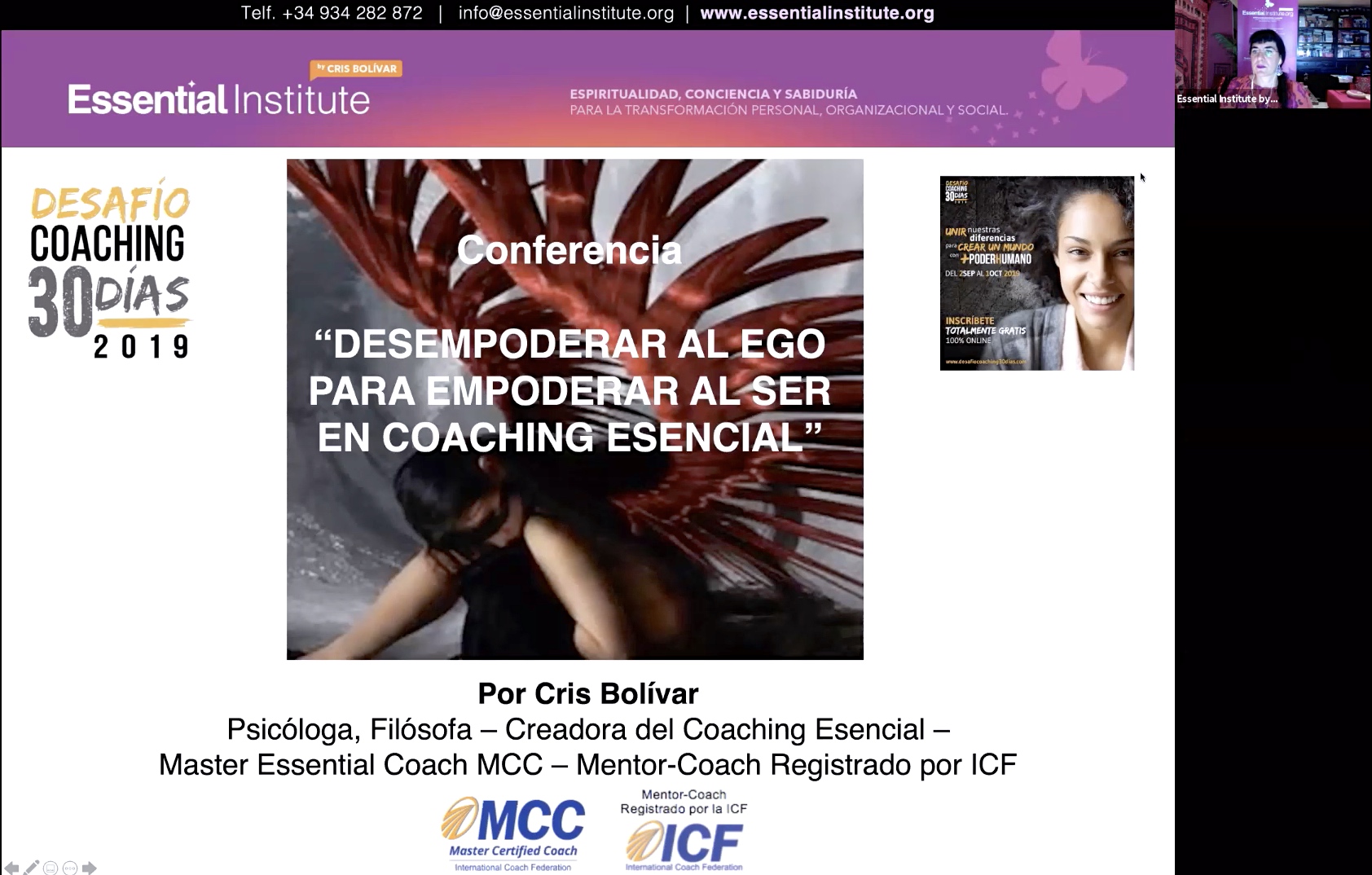 Se aportó la mirada, filosofía y herramientas de la Esencialidad, la psicología transpersonal y de los yoes jungiana, del eneagrama, del budismo… que facilitan el desempoderamiento del ego tanto del coachee como del ser del coach y de sus 11 meta-competencias más allá de las competencias clave de la ICF.