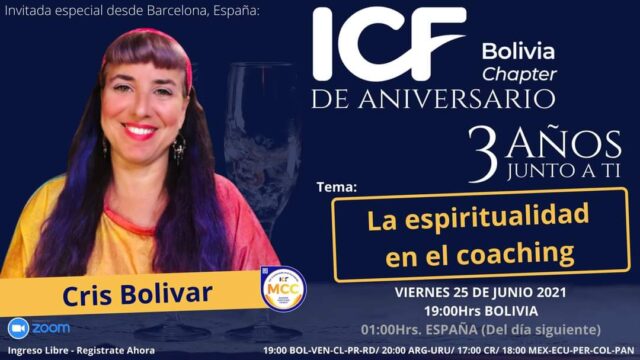 Conferencia «La espiritualidad en el coaching», por Cris Bolívar en el cierre con broche de oro del 3er aniversario de la ICF Bolivia.