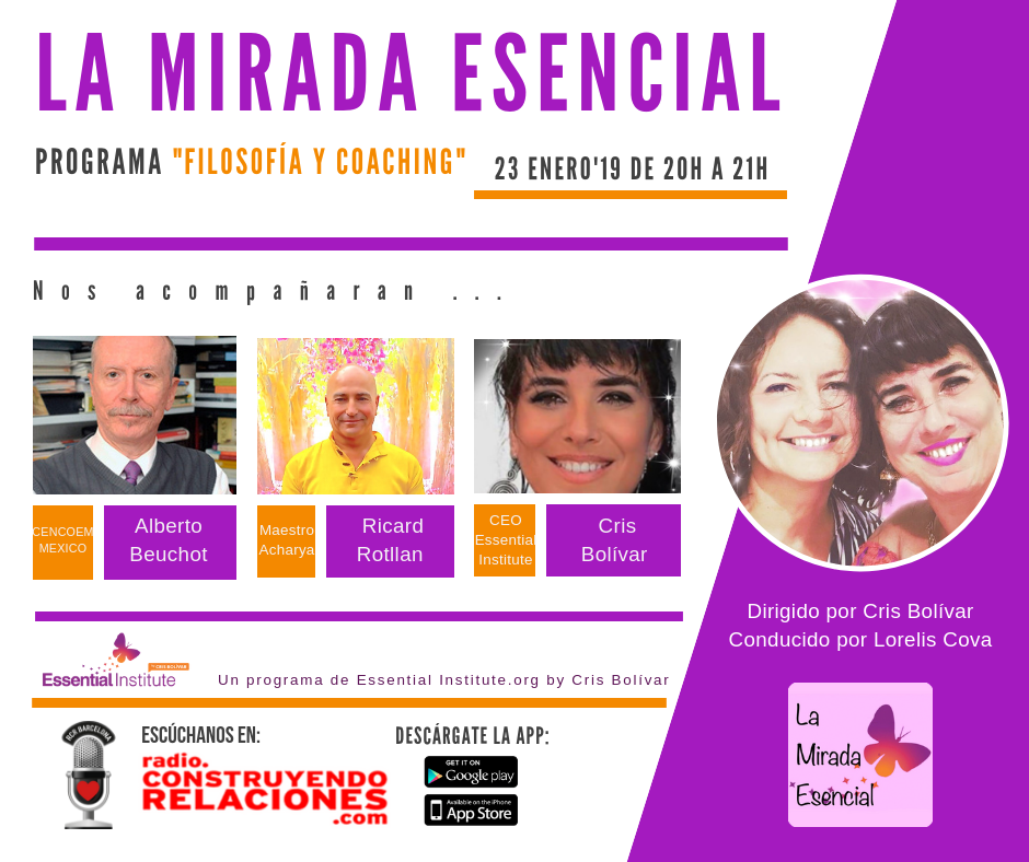 Escucha también el programa de radio «La Mirada Esencial» sobre «Filosofía y Coaching» con Alberto Beuchot, Cris Bolívar y Ricard Rotllan.