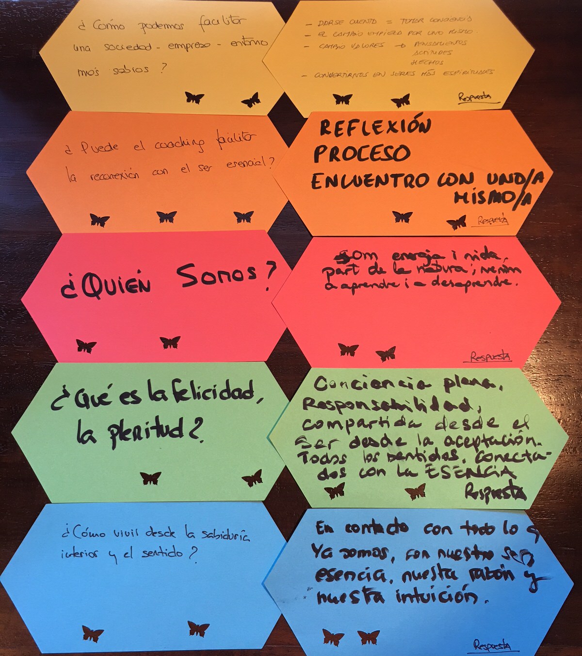 Cada participante tenía una de las 5 preguntas esenciales y tras una reflexión individual, por grupos consensuaron las siguientes respuestas …
