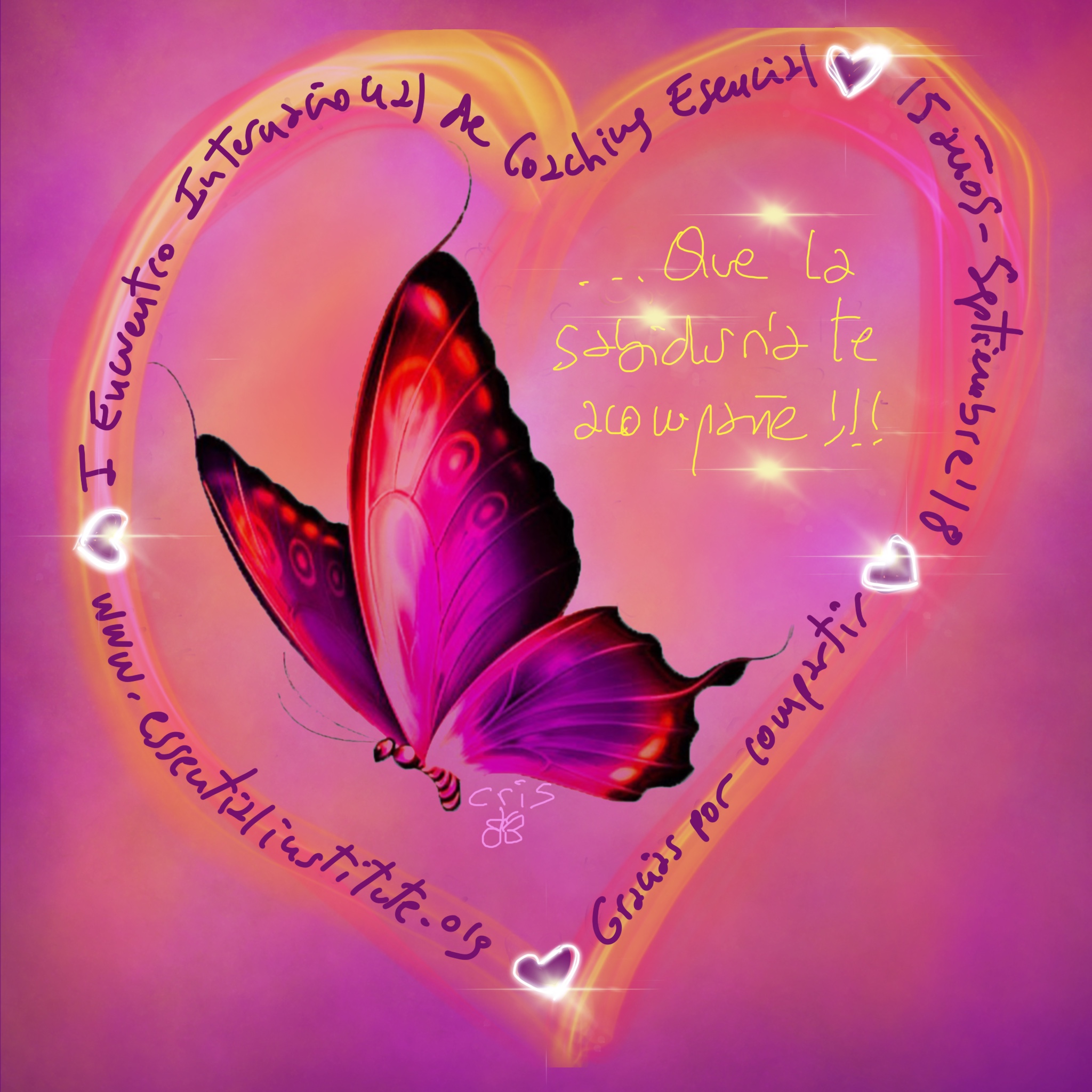 - «Hola Cris, Deseo agradecerte tu disponibilidad y tu generosidad en el meeting de ayer. El día en su plenitud, el Instituto, la gente y el amor que has sabido hacer florecer a tu alrededor en un proyecto tan hermoso y enriquecedor, además de altruista, me ha llegado al alma. Un abrazo Cris y GRACIAS DE MI CORAZÓN.» L.M.