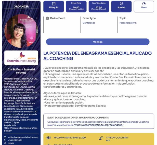 ACCESO GRATUITO – TALLERES de Essential Institute en la Semana Internacional del Coaching mayo’26 ICF