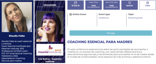 En esta conferencia exploraremos sobre las particularidades de acompañar a madres en un proceso de coaching, con casos donde reflexionaremos y descubriremos algunos tips y herramientas para acompañar el rol de madre desde la mirada de la Esencialidad, hacia espacios de más armonía y sabiduría interior.