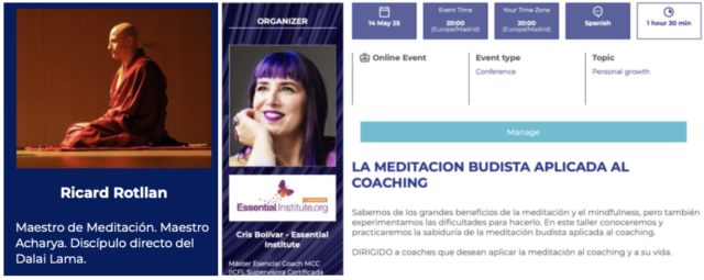 Sabemos de los grandes beneficios de la meditación y el mindfulness, pero también experimentamos las dificultades para hacerlo. En este taller conoceremos y practicaremos la sabiduría de la meditación budista aplicada al coaching.