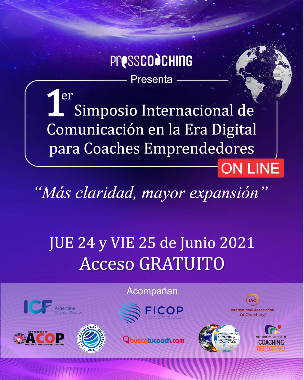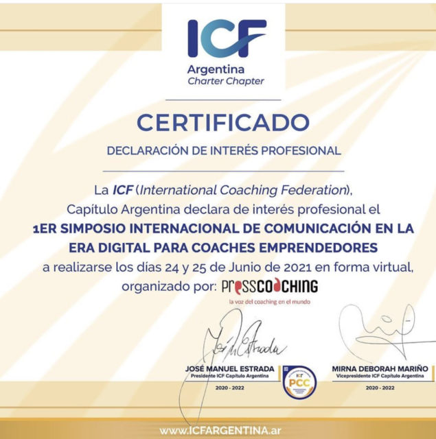 Con 32 referentes internacionales del mundo del Coaching, el Simposio ha sido declarado de “Interés Profesional” por la International Coach Federation ICF Capítulo Argentina y la International Association of Coaching IAC (en su Junta de Gobierno Global).