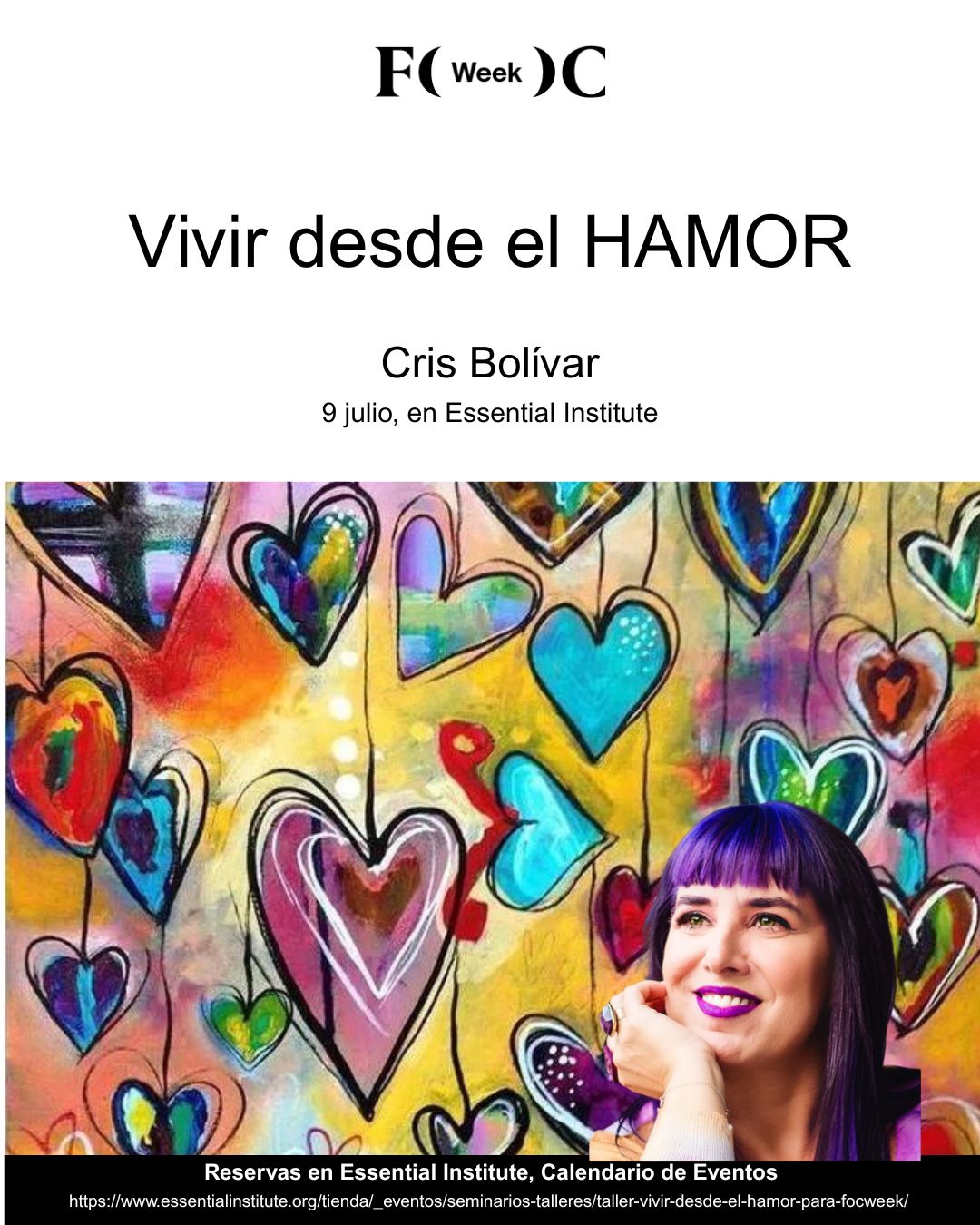 En el marco del Festival de Consciencia de Barcelona, en la FOC Week, Cris Bolívar impartirá el taller «Vivir desde el HAMOR».