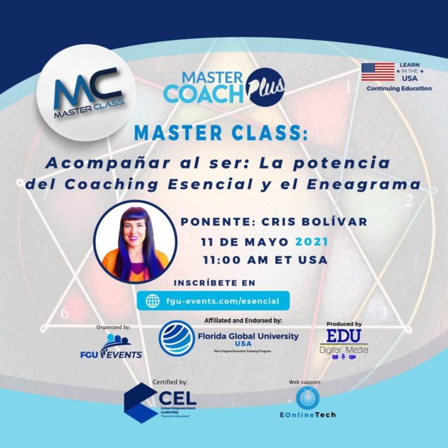 Master Class “Acompañar al Ser: La potencia del Coaching Esencial y el Eneagrama Esencial” por Cris Bolívar para para la Florida Global University (USA) – Master Coach Plus Institute de formación continua.